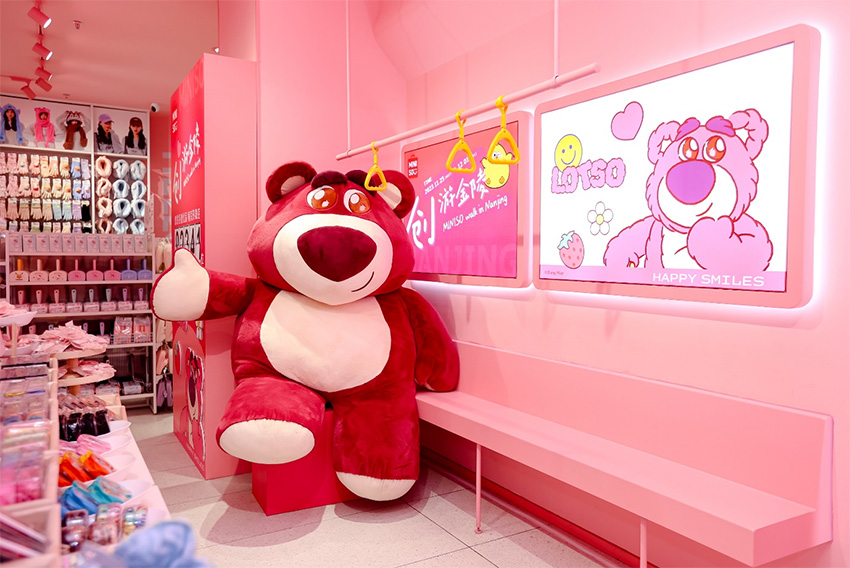 (图片说明:名创优品南京城市形象店“草莓熊车站”)